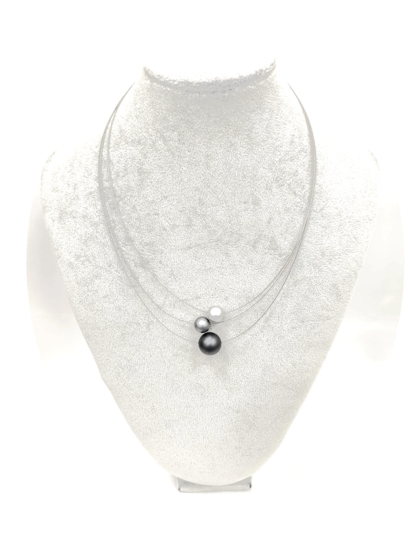 3-reihige, feine Halskette aus Kunststoff-ummanteltem Edelstahldraht.
