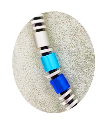 ASKA006- Blickfang blau, türkis,grau aus elox. Alum. Walzen 10x10 & Scheiben