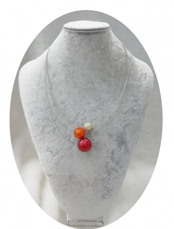 OLA6003- 3 reihige feine Halskette, 3 Magic Perlen, rot, orange, beige