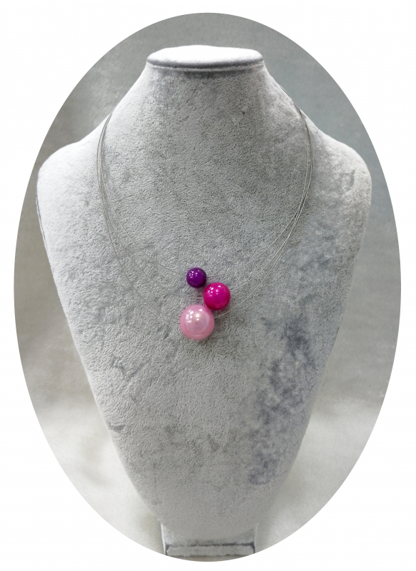 OLA6005- 3 reihige feine Halskette, 3 Magic Perlen, lila, pink, rosa
