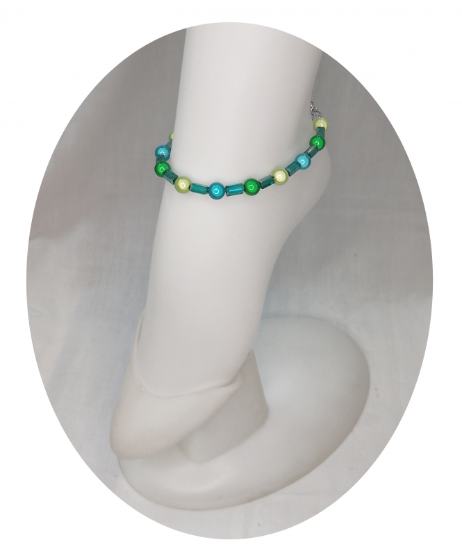 FMP2009- Fusskette aus Magic Perlen, blau, grün peridot 8mm + kristall