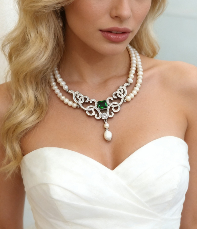 Anhänger: Messing Weißgold platiert, Majestätischem Stil mit Turmalinartigen grünen Zikonia.