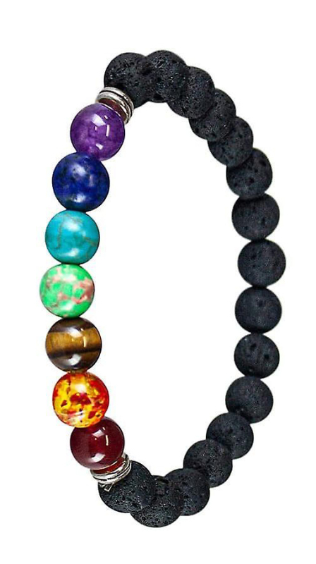 Chakra Armband Lava+Edelsteinen mit silbernen Element 18-19 cm