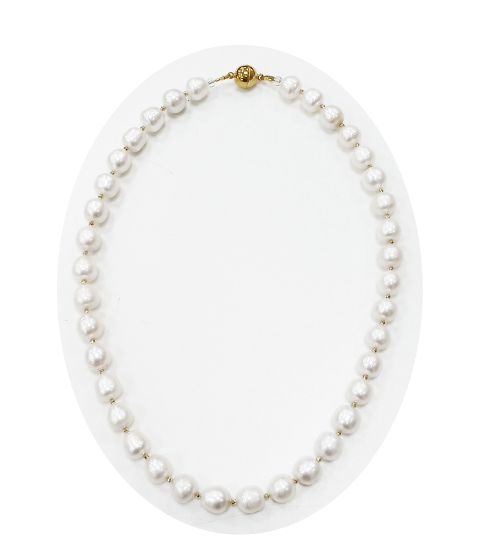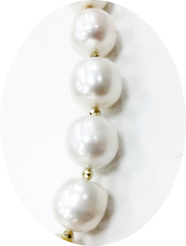 echte Süsswasserperlen ca 9-10 mm Durchmesser, fast rund, sehr wenig Wachsenspuren.