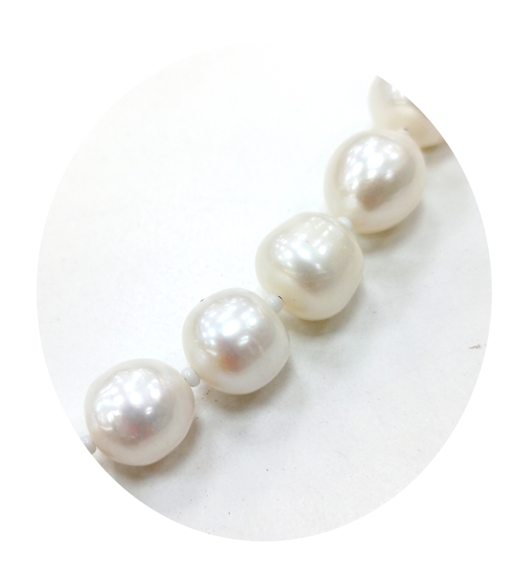 echte Süsswasserperlen  ca 9-10 mm Durchmesser, fast rund, sehr wenig Wachsenspuren.