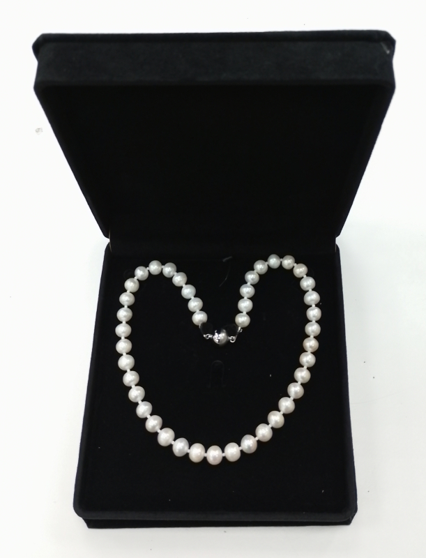 KW1002- Collier Süsswasserperlen ca 9-10mm, Rhodiniert Magnetverschluss