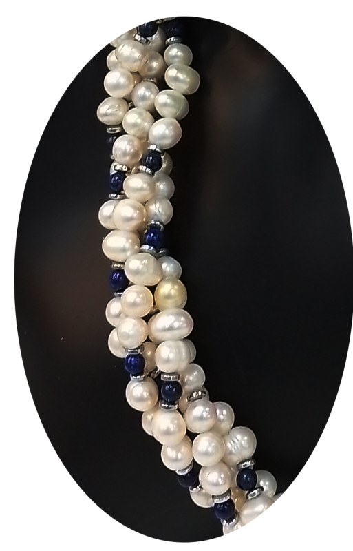 Material: Süsswasserperlen bunt ca 6-7 mm, Lapislazuli ca 6mm