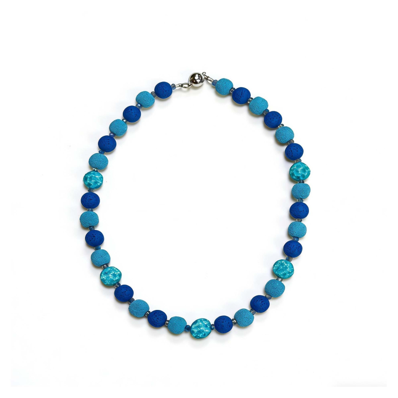 CAS1003- Kette aus Colorlave blauverlauf, Magnetverschluss