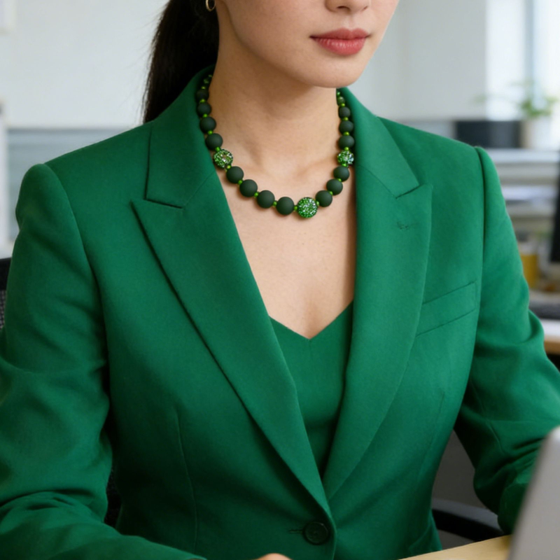 CAS1002- Kette aus Colorlave grün, dunkel grün, Magnetverschluss