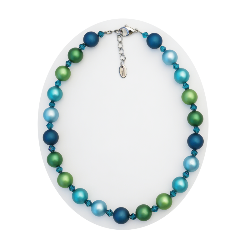 Hauptteile sind Kugel aus eloxiertem Aluminium Bunte, Edelstahlverschluss mit Verlängerungsketten.