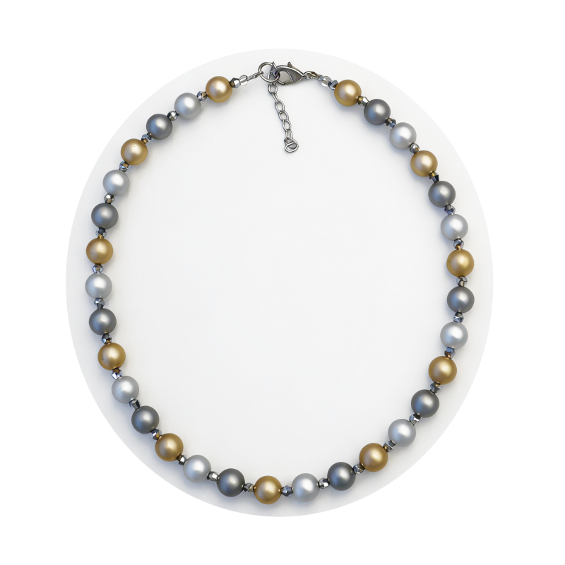 Hauptteile sind Kugel aus eloxiertem Aluminium Bunte,  Edelstahlverschluss mit Verlängerungsketten.