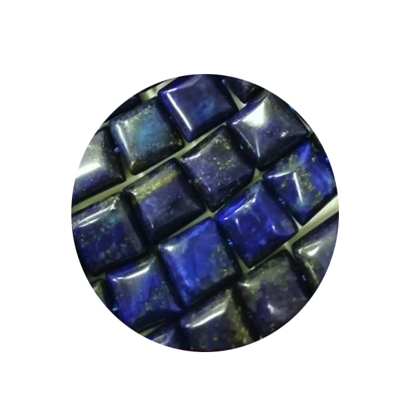 Der Strang besteht aus farbveredelten Lapislazuli in Royalblau mit golden schimmernden Pyriteinschlüssen.