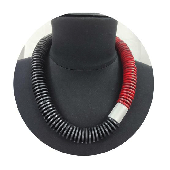 CSTA006- Kette aus Holzscheiben im Schwarz, Rot mit Alusilber 20# 52