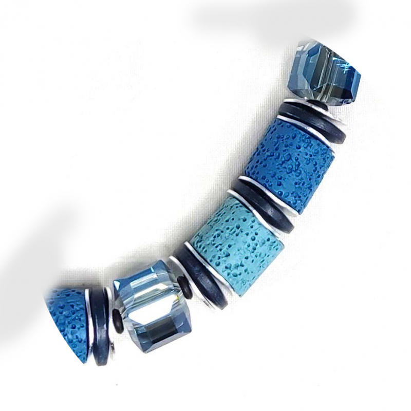 Lava in Walzenform 15x15mm Farbe Himmel blau und Caribic Blau