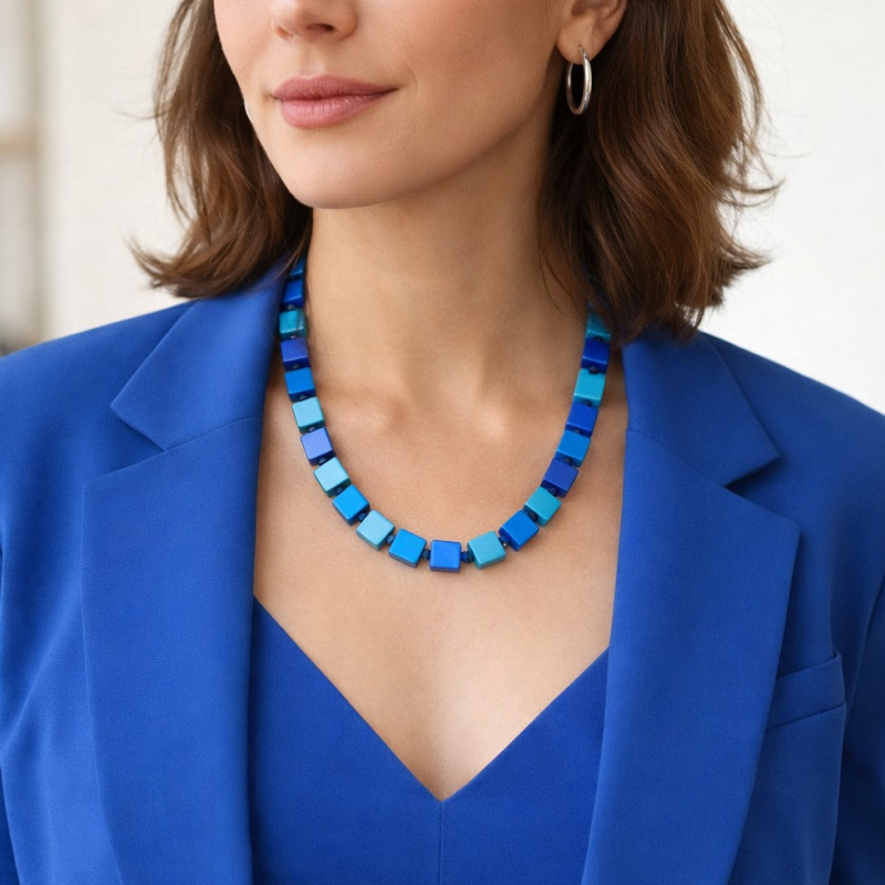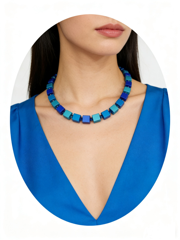 Es ist absolut Mode Trend, Schmuck der Highlight. Hauptteile sind Würfel aus eloxiertem Aluminium Bunte, Edelstahlverschluss mit Verlängerungsketten. Die Würfel sind 8x8x8 groß. Die Kette hat die Länge ca 42 + 5cm.