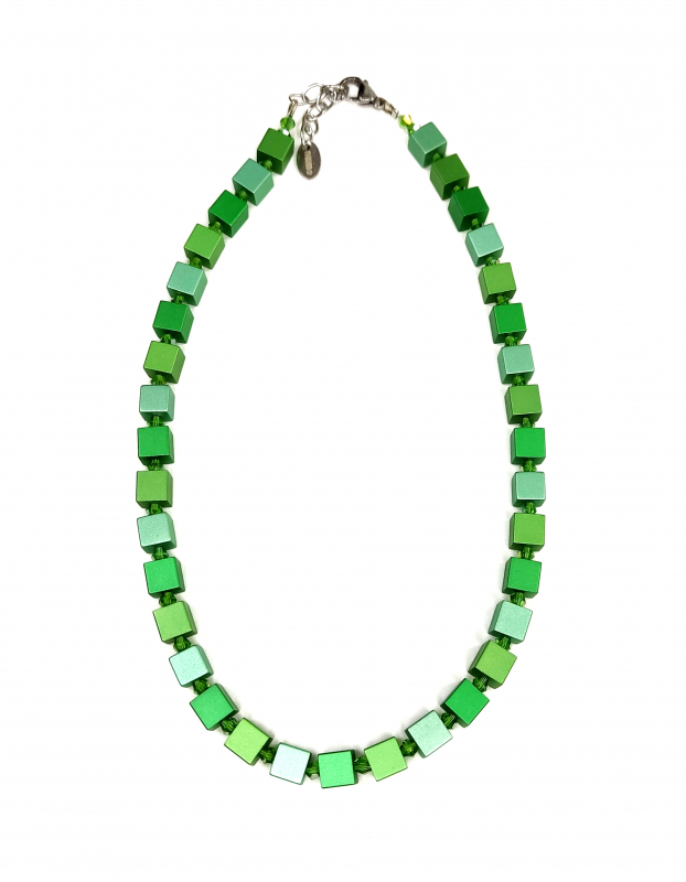 Es ist absolut Mode Trend, Schmuck der Highlight. Hauptteile sind Würfel aus eloxiertem Aluminium Bunte, Edelstahlverschluss mit Verlängerungsketten. Die Würfel sind 8x8x8 groß. Die Kette hat die Länge ca 42 + 5cm.