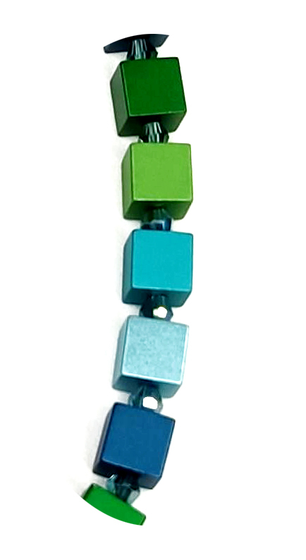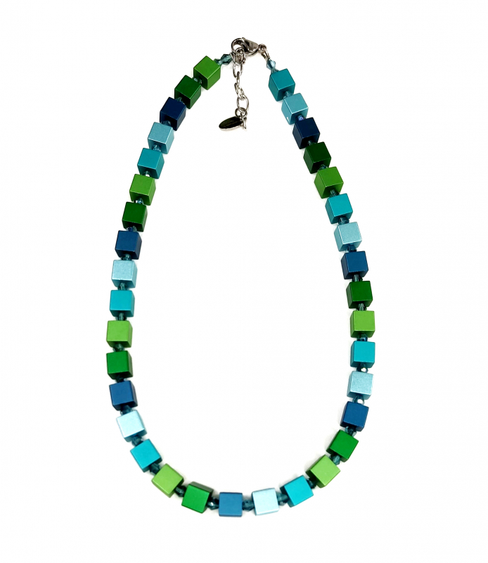 Es ist absolut Mode Trend, Schmuck der Highlight. Hauptteile sind Würfel aus eloxiertem Aluminium Bunte, Edelstahlverschluss mit Verlängerungsketten. Die Würfel sind 8x8x8 groß. Die Kette hat die Länge ca 42 + 5cm.