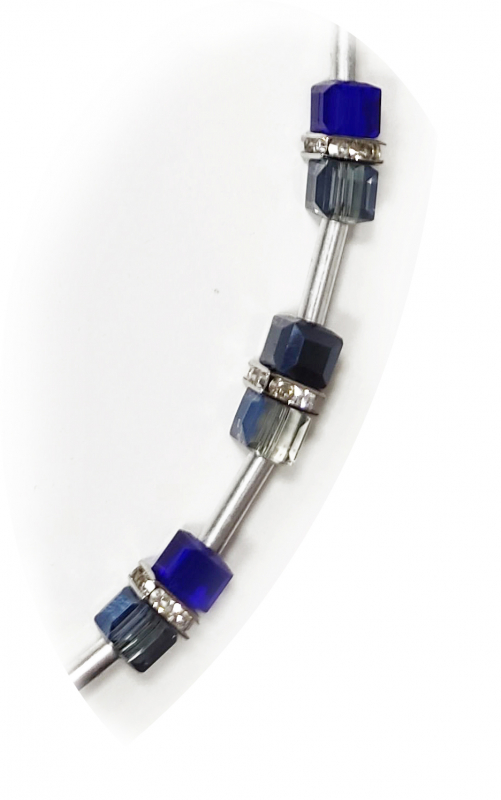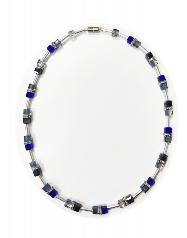 Dieses Kollier besteht aus Würfel in 6x6 und Rundellen mit Kristall.