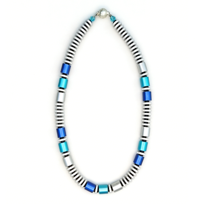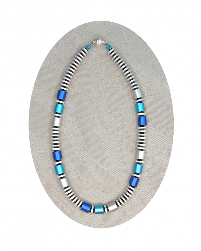 ASKA001- Blickfang blau, blau, Grau aus elox. Alum. Walzen 10x10 und Scheiben